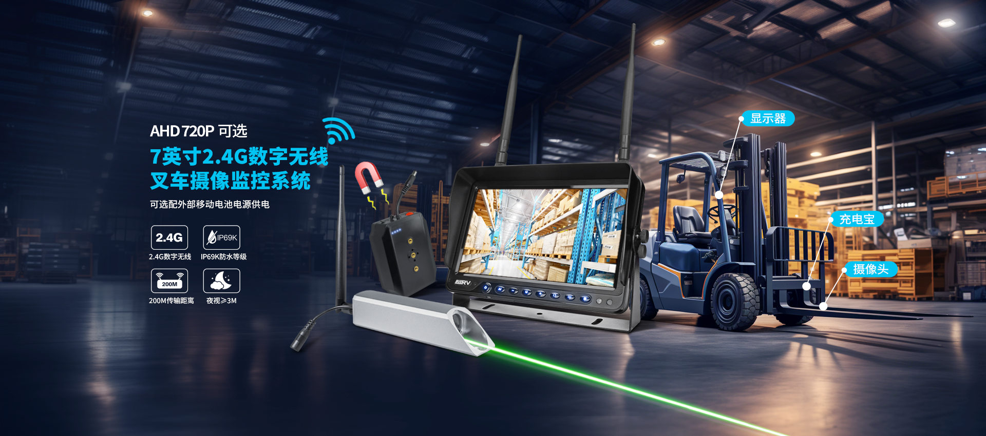 • 7英寸高清2.4GHz數字無線車載監控系統 (SF-7012SN)